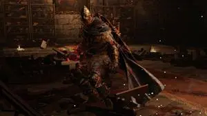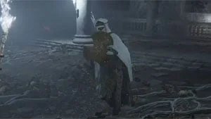 Volte ao corredor das armadilhas e siga em frente, matando os cadáveres pútridos. O portão de ferro da sala do chefe fica ao final do corredor, mas estará trancado. Vire à direita e suba a escada vertical. Descendo do outro lado, será atacado por um Espectro. Mate-o e pegue o Fragmento de Osso Humano no corpo. Siga para oeste e pegue Resina de Raiz. Siga e pegue a Cachola Tagarela “Vamos ao Trabalho” no corpo. Mais a oeste, encontrará uma sombra de guerreiro, que não poderá atingir. Você precisa atrai-lo para fora da sala, e descer da ponte na direção sul. Leve-o ao final do corredor para a luz, e ele se tornará visível e atingível. Mate-o e irá abrir a porta de ferro da sala do chefe. Desça a escada, mate o cadáver pútrido e se prepare antes de passar pela névoa amarela.