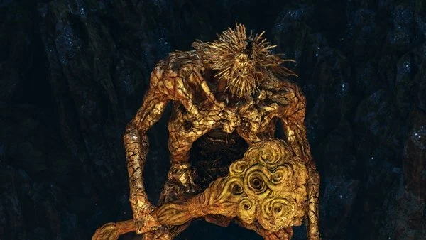 O chefe do local será o Troll Escavador de Pedras. Bem, basicamente é um troll comum, só que bem mais forte. Seus golpes não serão muito diferentes dos golpes dos trolls que já enfrentou dezenas de vezes. Na verdade, já enfrentou um chefe idêntico a esse, até com o mesmo nome, lá em Limgrave. Invoque o espírito para distraí-lo e use feitiços para acabar com a vida dele rapidamente. Acabando com esse troll, conseguirá a Arma: Clava Imensa. Use o sinal no local para ir embora desse túnel.