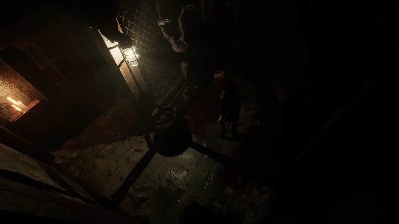 Você pode subir ou descer, mas como não poderá fazer nada na sala acima, desça a escada até o final, durante a descida, algumas luzes vão se apagar novamente, corra até o final da escada, mas não passe pela porta ainda. Note o corpo pendurado na grade do lado oposto à porta, verifique ele e use o alicate para cortar os fios de aço e conseguir o Isqueiro. Equipe ele imediatamente usando algum atalho do seu menu rápido, isso ajudará muito quando for enfrentar um inimigo em locais escuros. A porta está fechada, então resta subir a escada e voltar pelo caminho que lhe trouxe até aqui.