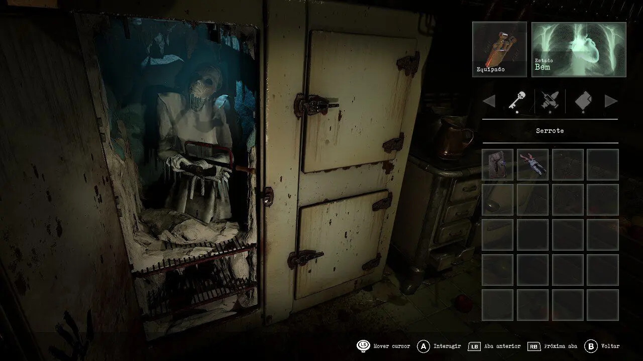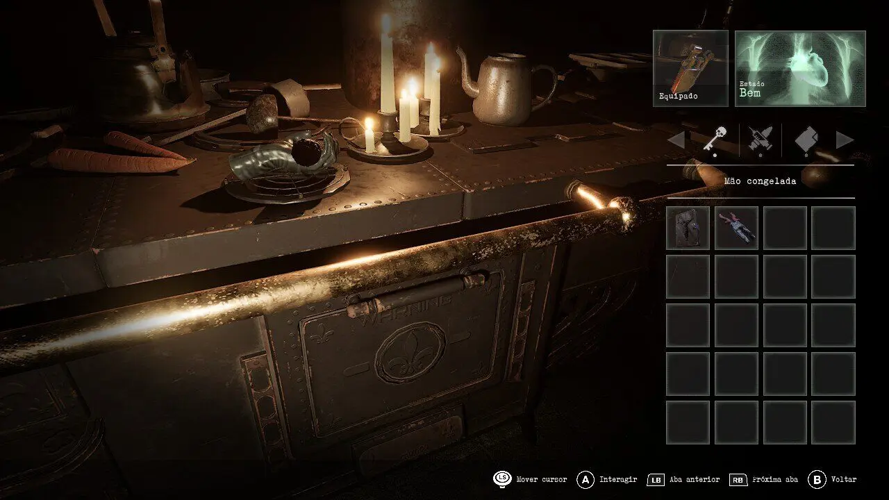 No freezer com a freira congelada, use o Serrote para cortar a mão dela, conseguindo a Mão Congelada. Volte até o lado oposto do fogão e verifique com compartimento inferior, use o isqueiro para colocar fogo na lenha, em seguida, coloque a Mão congelada na parte superior e quando ela se abrir, pegue o Criptex.