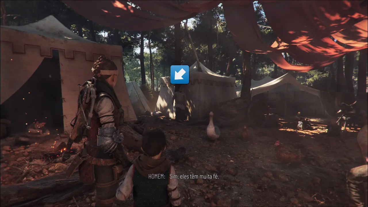 Começamos o capítulo na floresta, após a cena, quando estiver no controle, siga o caminho em frente. Em determinado momento, os irmãos vão começar a brincar de correr, Hugo se distanciará, e cairá, apenas siga até ele para descobrir algo novo, encontraremos o colecionável Gaio (5/12). Siga o caminho beirando o lago até chegar em um pequeno vilarejo com algumas mulheres lavando roupa, entraremos em um diálogo. Quando terminar de conversar, siga em frente se atentando a um homem encostado em uma árvore a esquerda, passe por ele, entre as barracas ainda a esquerda e na bifurcação, mantenha-se a esquerda, encontraremos um balanço em uma árvore. Siga até o balanço e brinque com Hugo para desbloquear Souvenir: Imagine que está voando (9/21), feito isso, volte até o acampamento e siga em frente, chegaremos em uma missa, converse com o sacerdote.