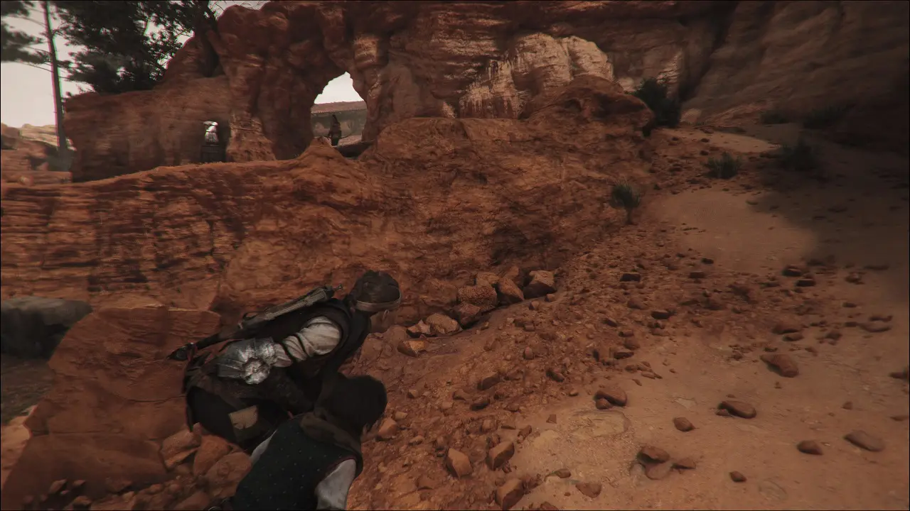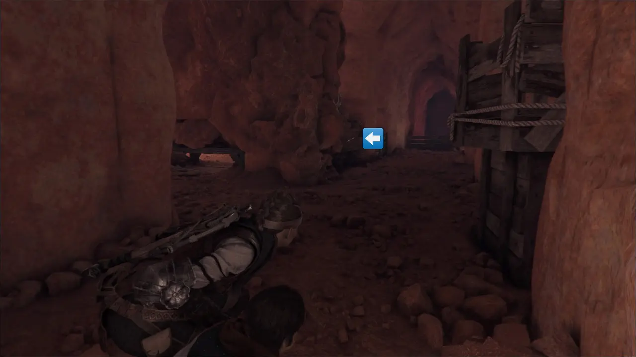 Infelizmente, os soldados vão aparecer procurando por nós. Apesar de saber o que fizemos, o sacerdote irá nos ajudar, siga ele pelo acampamento enquanto os habitantes distraem os guardas, teremos eventualmente de nos esconder debaixo de um carrinho. Quando o sacerdote avisar, saia e siga a direita, entrando no curral, siga em frente e sairemos do outro lado. Os guardas vão nos avistar, entraremos em uma breve perseguição, até que eles nos deixem. Quando estiver no desfiladeiro, siga em frente até chegar em um conjunto de cavernas, antes de entrar, siga a esquerda e encontraremos um baú com uma Resina, voltando até as cavernas, a direita teremos uma bancada, mas se você vem seguindo o guia como recomendei, não terá serventia. Quando estiver pronto, siga para dentro da caverna.