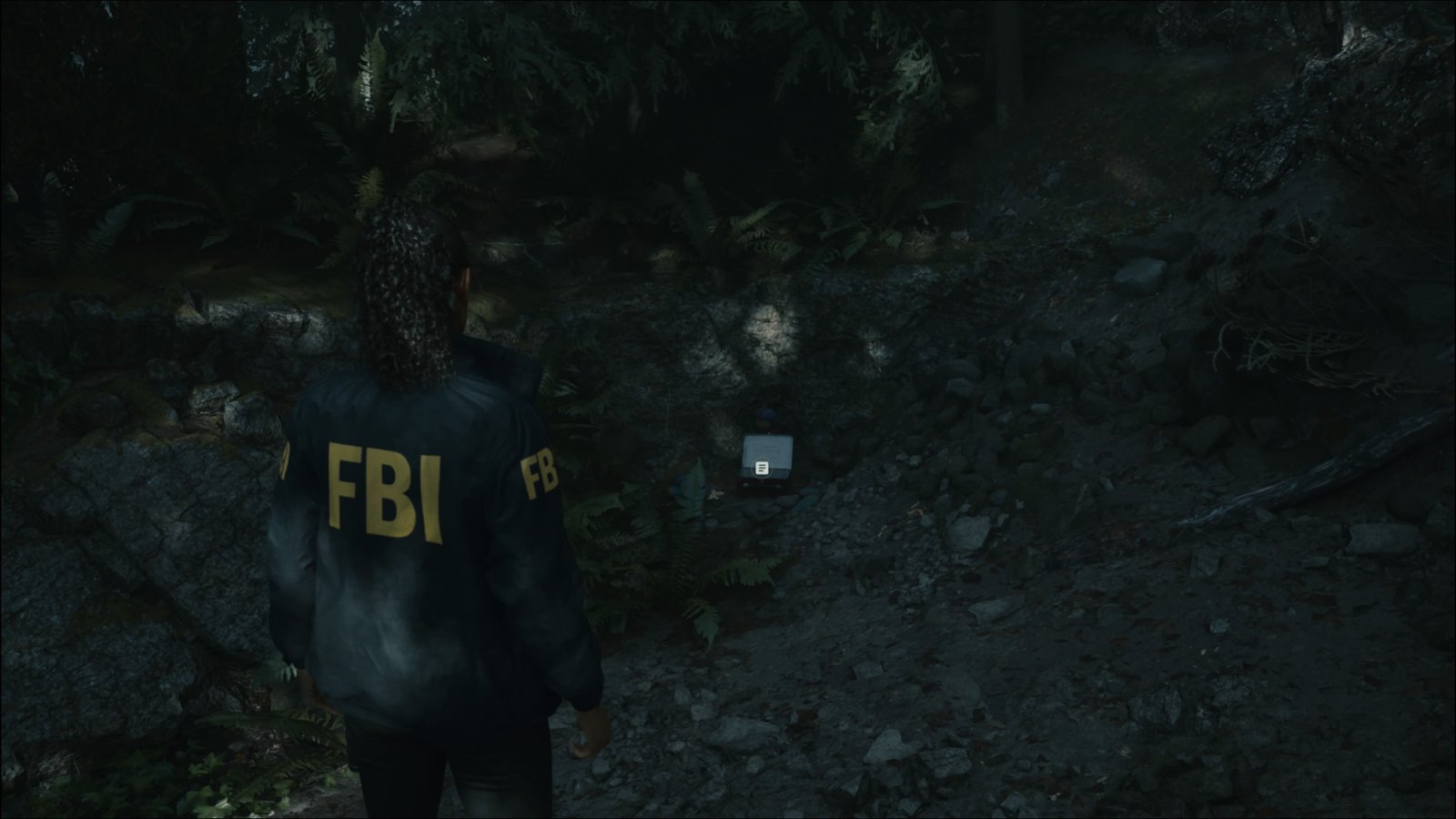 Volte para a cena do crime e siga o Casey indo para oeste e depois norte. Siga em frente, mas atente-se para um desvio à direita, que segue para o norte. Suba na parte alta, e chegará a uma cabana identificada no mapa como Witch’s Hut no mapa. Não há nada de interessante lá dentro agora, mas vá para oeste e atravesse a ponte. Verá um acampamento. Leia o texto e abra a caixa para obter 2 Pacotes de Pilhas. Atrás da árvore à direita, encontrará a Lancheira de Alex Casey 5/43. Abra-a e pegue 1 Fragmento de Manuscrito.