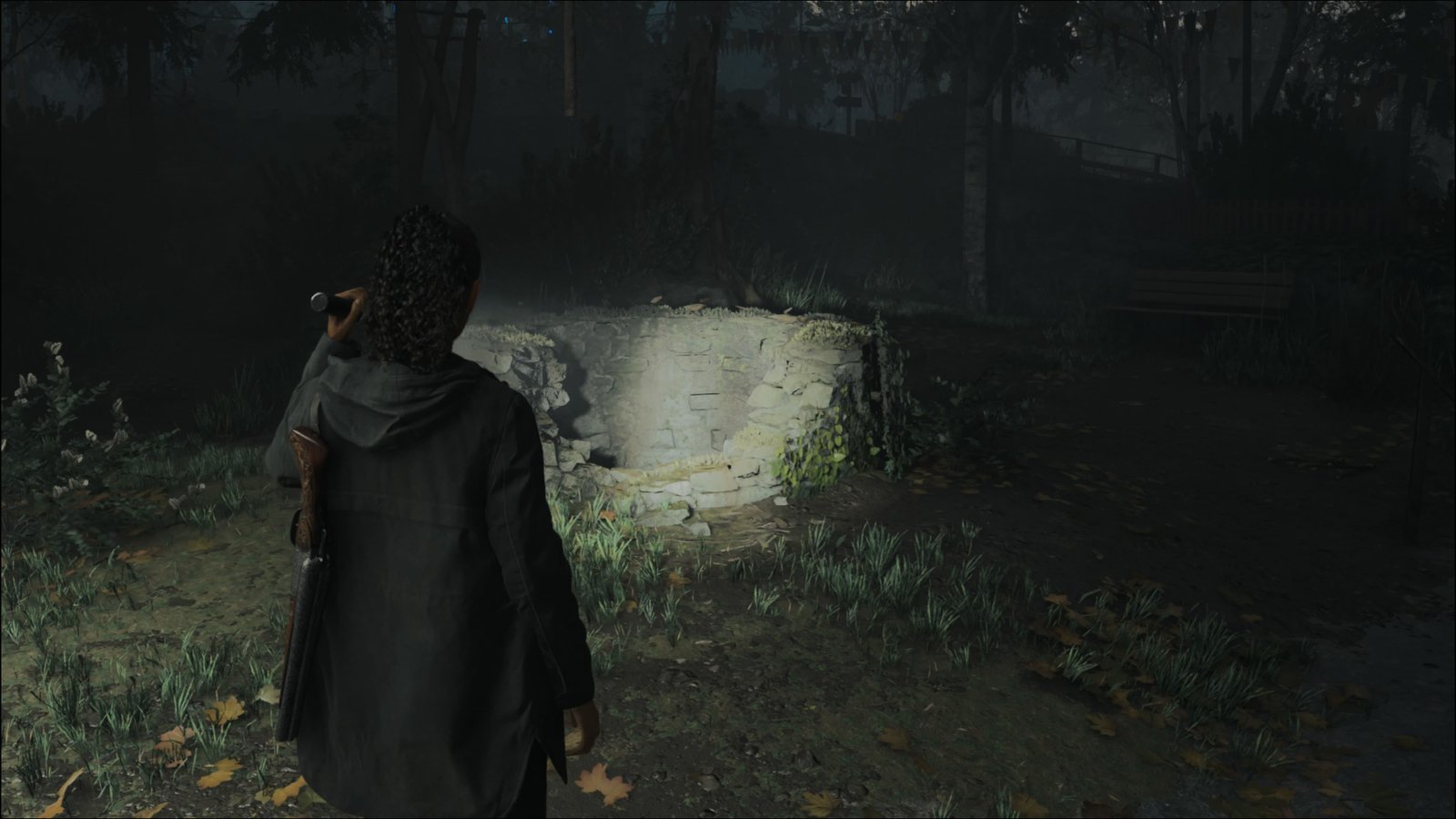 Assim que subir as escadas, enfrentará o Mulligan e o Thornton. Na verdade, não poderá destruí-los inicialmente. Terá de acabar primeiro com os Nodos de Escuridão espalhados pela área, usando a luz intensa da sua lanterna. Serão pelo menos 6 Nodos de Escuridão que terá de destruir, e será atacado o tempo todo. Acostume-se a esquivar quando ouvir o som deles carregando a arma, para desviar do tiro. Caso fique ferido, procure um local seguro e se cure. Após destruir todos os Nodos de Escuridão, a Saga irá dizer que poderá lidar com o Mulligan e o Thornton. O Mulligan está armado e ficará atirando em nós do alto das pedras. É aconselhável lidar com ele primeiro, usando a Besta à distância. O Thornton se aproxima mais, então use a Espingarda de Cano Serrado contra ele. Repare que eles emitem um brilho que ajuda a identificá-los na escuridão. Será uma batalha feroz, e sem trégua, mesmo na dificuldade mais baixa, então tome cuidado com a vida. Quando a batalha terminar, irá liberar o seguinte troféu: