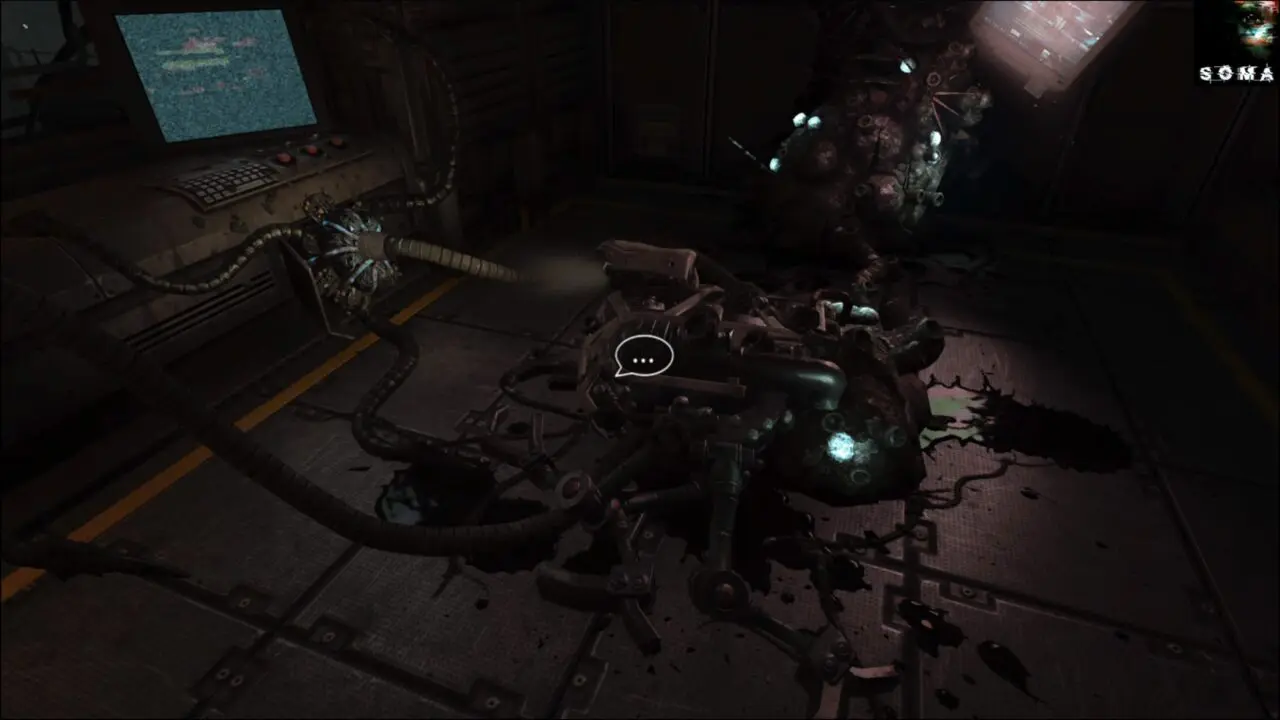 SOMA nos apresenta uma história nesse sentido, um conto de terror e ficção cientifica que acontece de maneira simples, mas bem marcante. O jogo foca pesado no terror e nas escolhas que o jogador deve tomar diante de situações criticas.