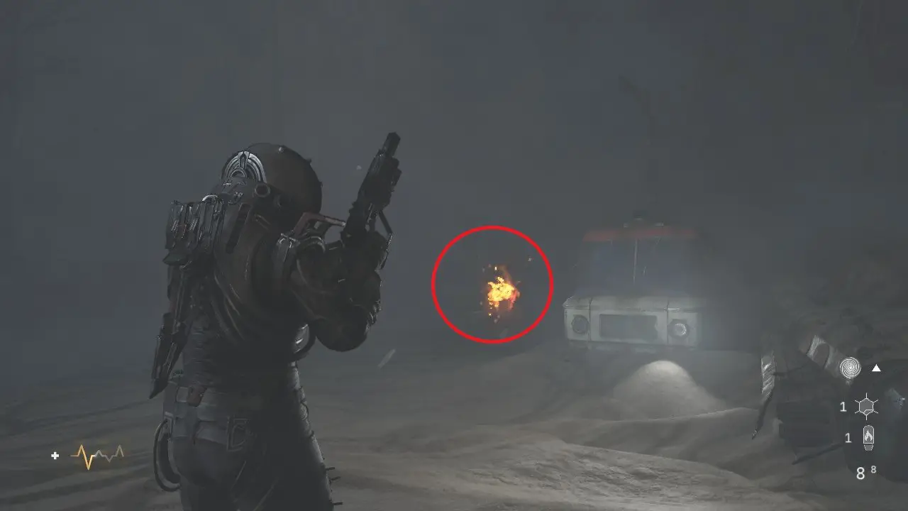- Fase 2: O comportamento é basicamente o mesmo, mais o monstro começará a se esconder e aparecer diante de você. Além disso, ele deixará alguns vermes no caminho que vão atrasar você, caso passe sobre eles. Mantenha a estrategia de reconstruir os barris e atrair a criatura para explodir e revelr os nódulos, explodidindo todos eles novamente, a criaturá morrerá definitivamente. recolha tudo que ela deixar e os demais itens pelo caminho.