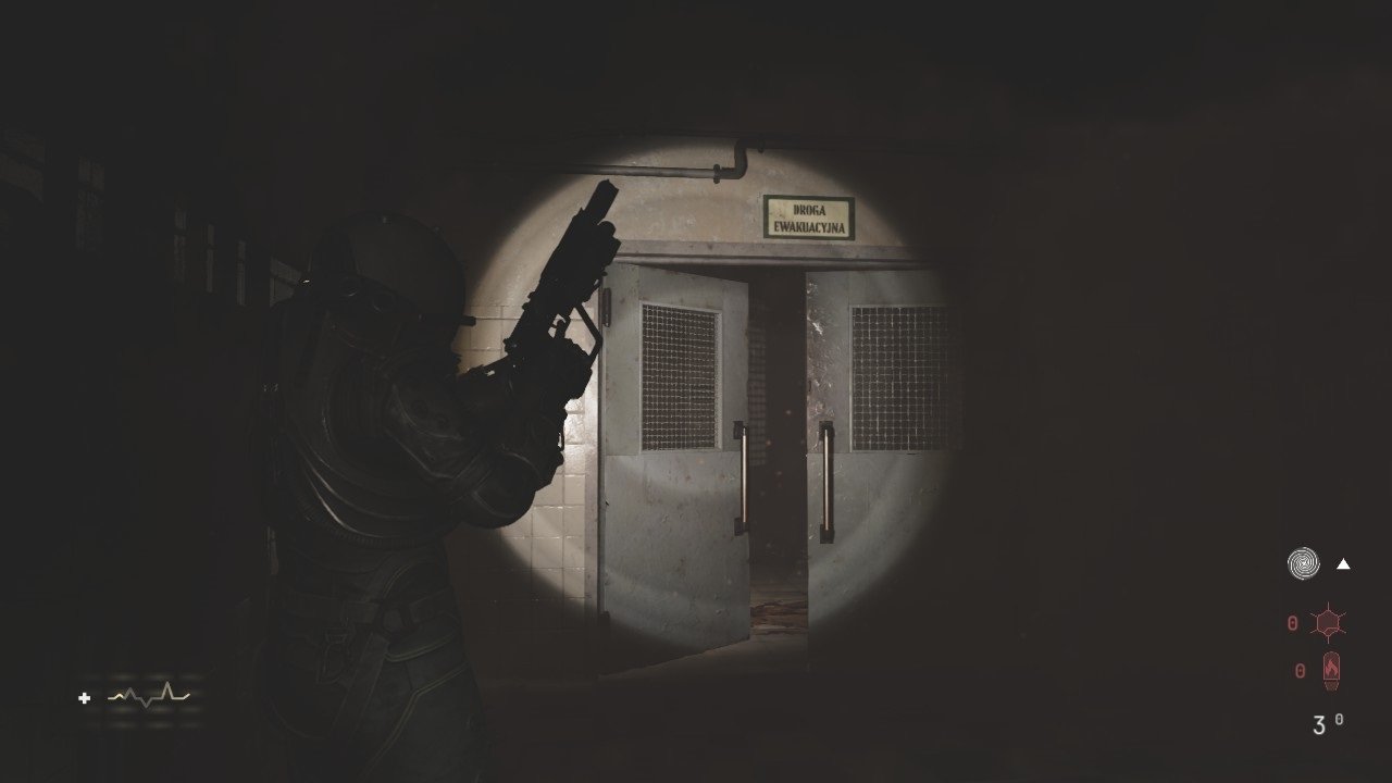 Feito isso, siga em frente para chegar em uma area mais aberta, entre na porta imediatamente à esquerda e colete a Chave da Sala de descanso sobre a mesa e o Arquivo: Mudança de Plano, Sortes do Acaso e Dra. Weronika Kaminski. Quando sair, cuidado com o Wallcorpse que acordou, Note que podemos abrir a porta à esquerda. o que nos leva ao escritório do diretor que exploramos anteriormente. Reparou na monstruosidade pulsante batendo nas proximidades? Ignore isso por enquanto, mas tenha o local em mente, voltaremos em breve. Volte e siga pela porta de atalho que abrimos anteriormente (a última que você abriu como atalho, mas não seguiu em frente), siga para a porta fechada e use a chave que acabamos de coletar. Saqueie a sala coletando a Fórmula C-66 (3/3). Saia dessa sala e volte pelo corredor à esquerda, movendo o armário novamente até voltar ao corredor do ponto de controle. Passe pelo elevador e entre na sala Diagnostyka.