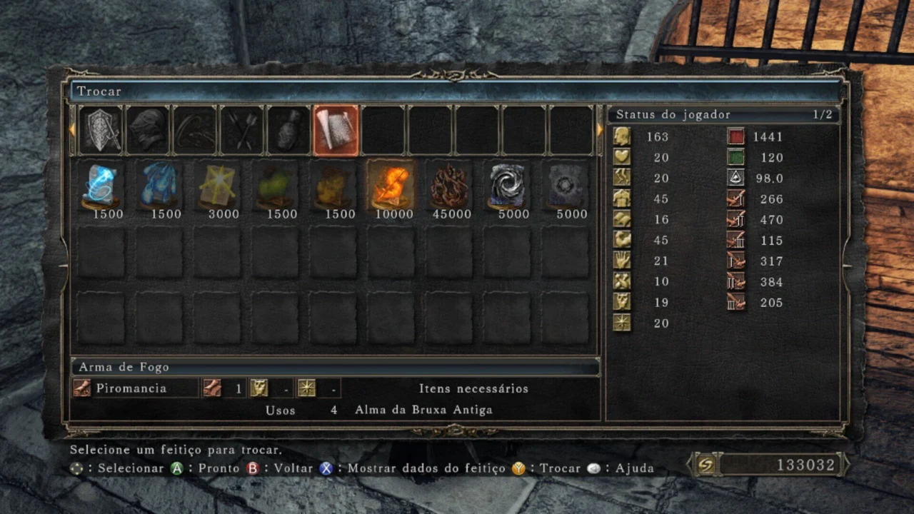 - Siga até a arena e se estiver como humano, invoque o Mercenário Luet e Lucatiel de Mirrah para ajudar no confronto contra a Pecadora Perdida. Note que ela estará diferente. Quando você acender as fornalhas laterais para enfraquecê-la, ela usará essas chamas para invocar dois fantasmas piromantes. Vencendo, você receberá a Alma da Bruxa Antiga, volte até a Cela de Straid e troque essa alma pela Piromancia: Arma de Fogo (23/24).