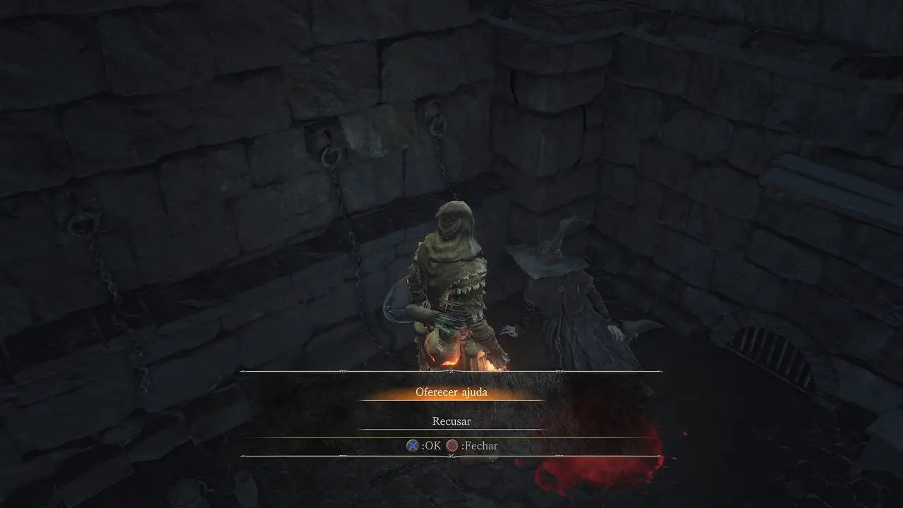 Você pode enfrentar os inimigos, esperando o momento em que eles se separam ou tentar passar desapercebidamente nesse momento, subindo a escada à esquerda e tomando cuidado com o Demônio na cela para que ele não o veja. Siga pelo corredor paralelo e quando for seguro, verifique a cela para usar a Chave de carcereiro que coletamos anteriormente. Converse com Karla e escolha Oferecer ajuda, em seguida, selecione Ajudar assim mesmo. Ela seguirá para o Santuário do Elo de Fogo como uma NPC comerciante.