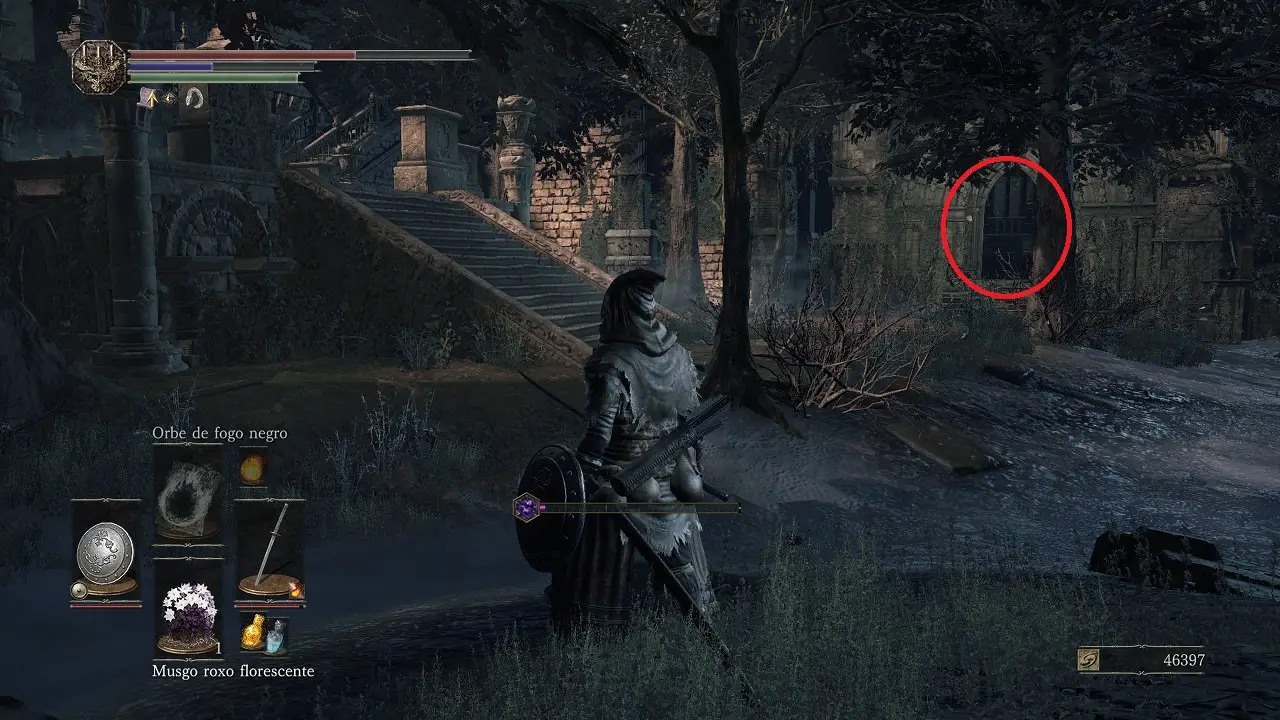 À direita, você terá de lidar com dois Cavaleiros da Catedral, chame a atenção do que está mais próximo, lutando com ele na parte mais elevada. No caso do outro que está guardando a passagem, você terá mais espaço para o confronto, vencendo ambos você receberá o Anel de quartzo mágico. Descendo a escada estaremos diante do chefe da área.