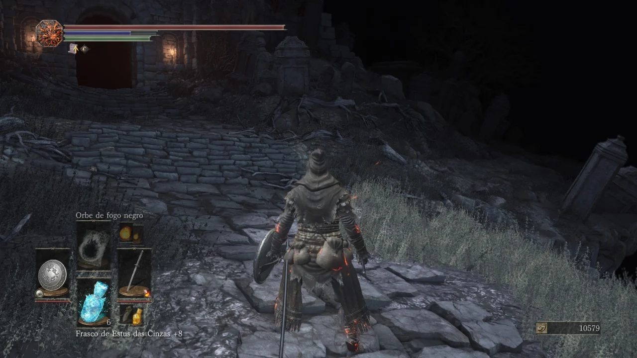 Feito isso, não haverá mais nada a se fazer aqui. Use um Osso do regresso e volte até o Santuário do Elo de Fogo, consuma as almas que tem, converse com André, entregando qualquer Fragmento de Estus que tenha. Faça os ajustes e compras que precisar, volte até a fogueira e queime qualquer Fragmento de osso de Morto-vivo que tenha, quando estiver pronto, viaje para a fogueira Grande Muralha de Lothric: Dançarina do Vale Boreal.
