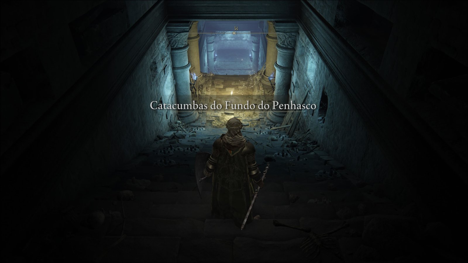 Trata-se de mais uma área subterrânea do jogo e de nível muito alto para nosso nível atual. Após descer o elevador, recomendo que apenas ative o Local de Graça: Profundezas do Poço do Rio Ainsel e a Pedra de Invocação, depois volte pelo elevador. Exploraremos esse local bem mais futuramente no jogo.