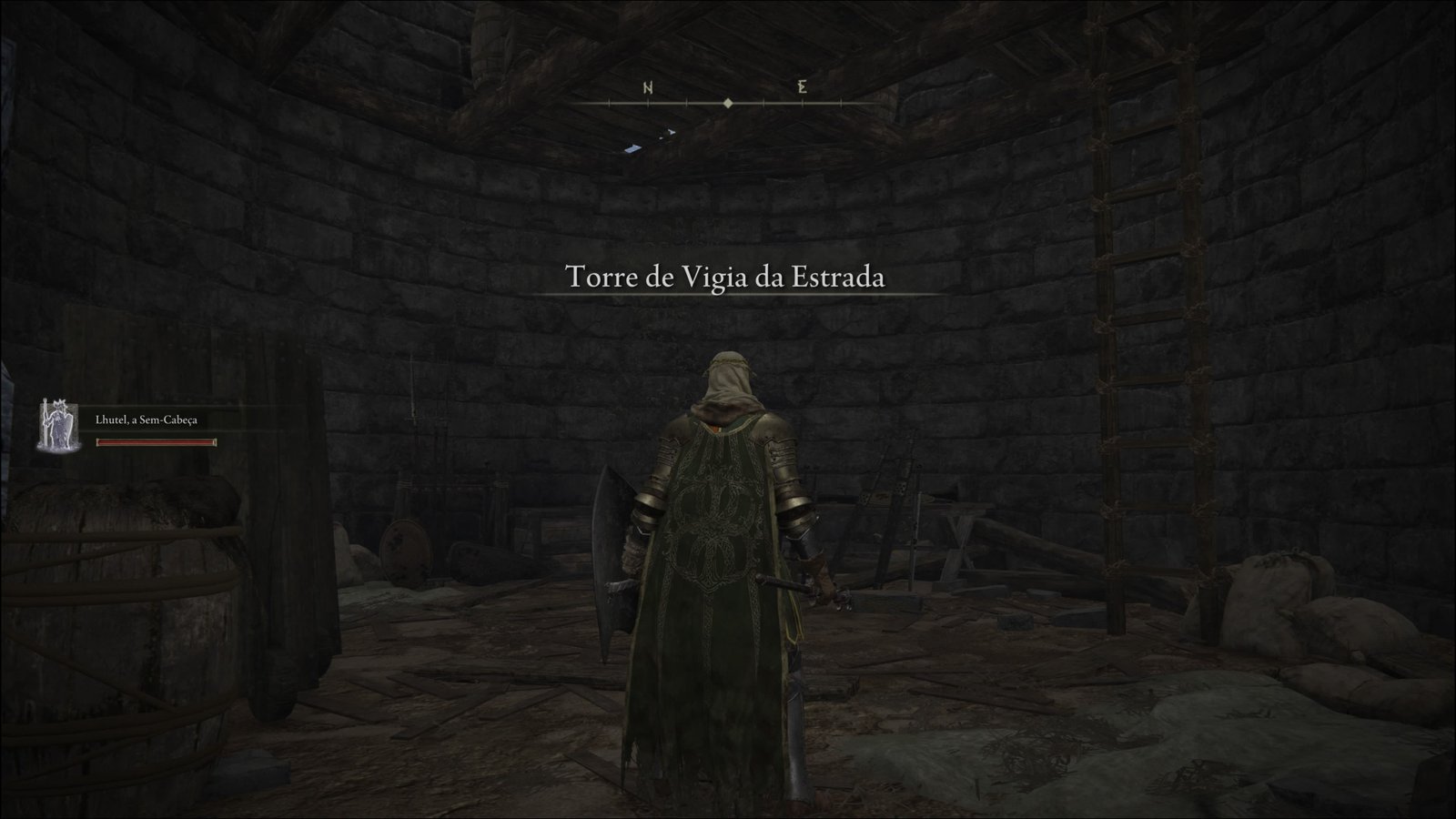 Agora volte para o local de graça Estrada de Liurnia Norte. A noroeste daqui, subindo uma colina, verá um acampamento inimigo com uma torre ao alto. Verá uma Estaca de Marika bem na entrada. O acampamento estará povoado por Fantasmas, e eles são muito fracos, mas a verdadeira ameaça é um Feiticeiro que ficará lançando feitiços do alto da torre no topo da colina. Invoque a Lhutel para distraí-los, ignore os Fantasmas e corra até a Torre de Vigia da Estrada.