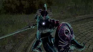 Aparecerá uma Cavalaria da Noite patrulhando a ponte ao norte. Esta será a versão mais forte desse inimigo que confrontou até agora, ele é muito resistente e bate forte. Eu recomendo que não use feitiços contra ele, pois devido ao pouco espaço para manobras no local, pode não ser uma boa ideia. Eu achei muito mais fácil usar ataques físicos nele enquanto montado no Torrente. Desequipe a Coroa Pedrilhante de Sábio Gêmeo e coloque todos os frascos curativos como frascos de cura de vida. Seja agressivo, vá para cima dele e ataque. Quando ele usar o golpe “rasteira”, em que ele brande a alabarda dele rente ao chão, poderá saltar com o Torrente e atacar, atingindo-o enquanto esquiva do ataque. Mantenha a ofensiva, mas desvie de seus golpes. Quando pegar o jeito, verá que não é tão difícil. Se mirar no cavalo, poderá matar o cavalo primeiro, derrubando-o no chão. Isso lhe permite um golpe crítico que tira muita vida. Aproveite para desmontar do Torrente e lutar com ele a pé. Os golpes dele são muito lentos, e poderá facilmente ir por trás dele e dar ataques críticos pelas costas. Se ele voltar a invocar o cavalo, faça o mesmo e repita a estratégia inicial. Ao acabar com ele, receberá a Cinza da Guerra: Passo do Cão de Caça. Agora atravesse a ponte. Haverá várias armadilhas de veneno pelo caminho, e será emboscado por membros da milícia vulgar. Você pode matá-los ou ignorá-los e seguir adiante, fica a seu critério. Quanto ao veneno, você sempre pode curar com o encantamento Chama, Limpe-Me. Siga estrada acima até o alto da colina, e então vá para oeste. Deverá encontrar um local de graça atrás de uma parte elevada.