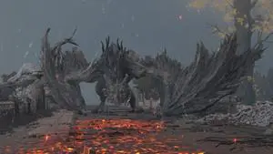 Voltando à superfície, vá para o norte e encontrará duas Mirandas e mais um monte de flores venenosas. Mate-as e suba nos troncos ao norte para pegar um Broto Sacramental. Agora, siga para o leste, acompanhando a margem norte do pântano. Verá um escaravelho vermelho e uma entrada entre as pedras ao norte, indo para uma ravina. Siga por essa ravina, tomando cuidado com os montes de pedra que explodem. Chegará a mais um demônio de várias cabeças, mate-o e pegue Pedra de Forja Sombria no local. Saindo da ravina, siga para sudeste e encontrará um local de graça.