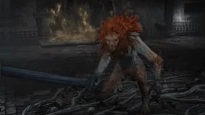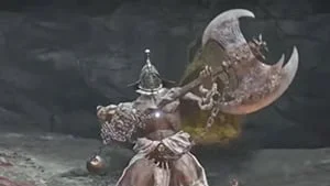 Essa inimiga se chama Anastasia, a Devoradora de Maculados. Ela bate forte, mas não é tão difícil de matar se souber calcular bem seus ataques. Usar magias de perseguição ou magias como a Falange de Lâmina Grande é excelente contra esses invasores. Derrote-a e conseguirá um Remédio de Dedo Invocador Enrolado e o Talismã: Talismã de Escorpião Sagrado, que deixa o usuário mais vulnerável, mas aumenta o dano de ataque sagrado.