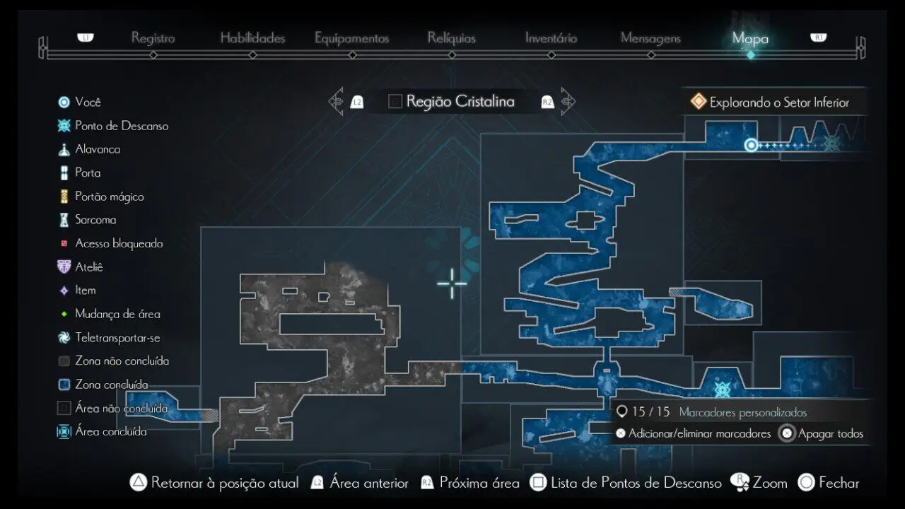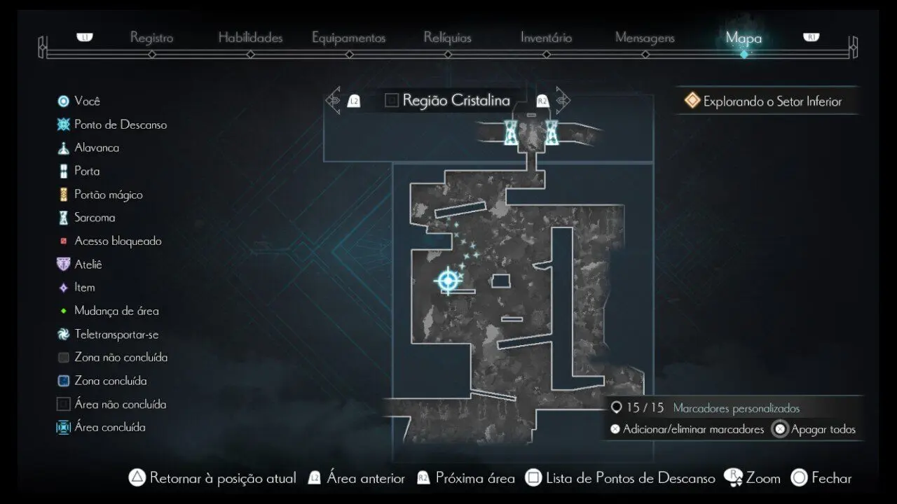 Nota: Aproveitando esse ponto de descanso,recomento que você equipe o Homúnculo Fera Acorrentada com as Correntes Giratórias ou a Investida, pois são ataques importantes para enfrentar um inimigo que encontraremos em breve.