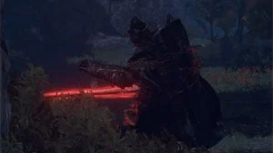 Agora volte para a Cabana do Mercador Ascético, lá no noroeste da parte norte de Caelid, e espere até o anoitecer. Quando estiver de noite, receberá uma visita nesse local.