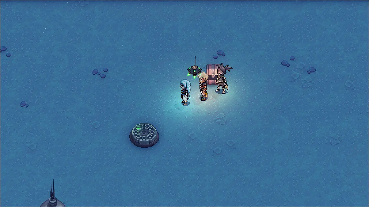 Puxe a plataforma a esquerda e continue subindo até entrar em uma batalha, após vencer, abra o baú para encontrar a Lâmina de Plasma, equipe em Zale. Siga para sudeste para sair desse local e assistir mais uma cena no triunvirato. Após a cena estaremos no mapa novamente, siga para o norte.