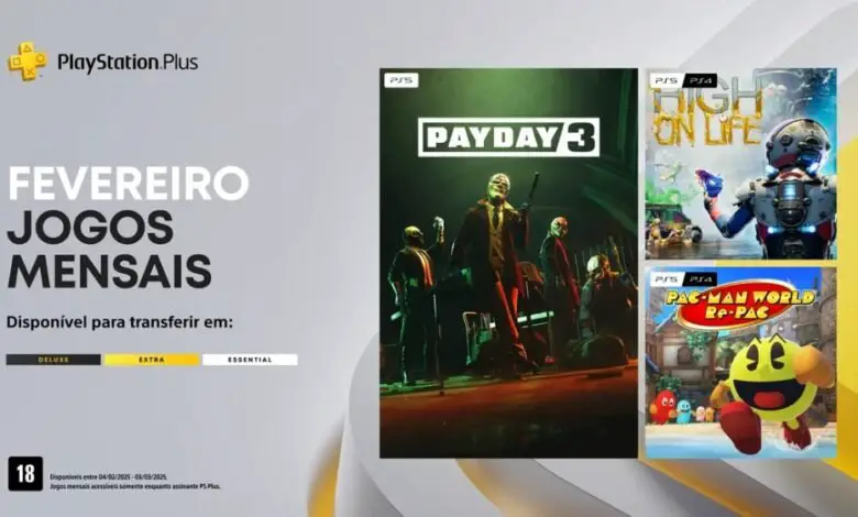 PlayStation Plus Essential Fevereiro de 2025: Payday 3, High on Life e Pac-Man World Re-Pac