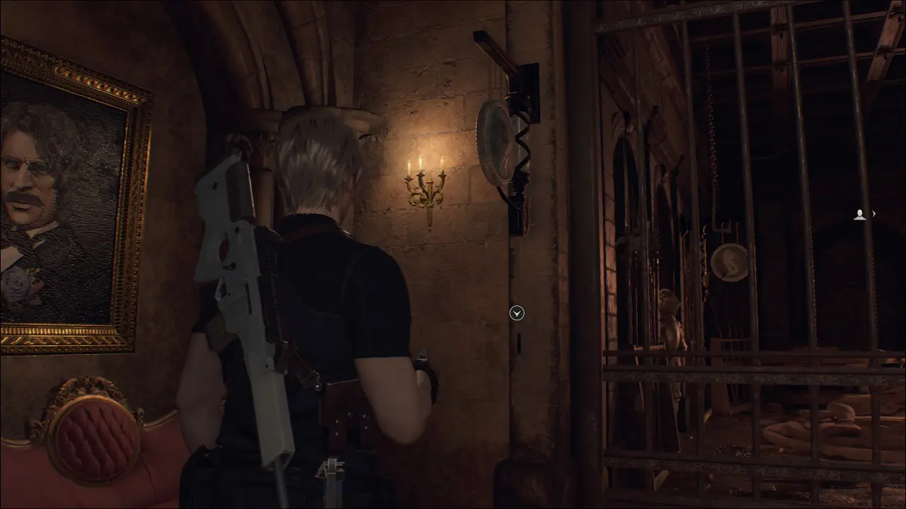 Após morrer, o inimigo deixará cair um Berilo Vermelho, não deixe de pegar. Além disso, temos vários itens e vasos espalhados pelo local, quando recolher tudo, abra o portão usando a manivela, chegando até onde Ashley está. Nesse local, leia as Observações do Zelador. Ele fala sobre o passado do homem transformado em Garrador, e de seu trabalho como torturador da corte de Salazar. Ele era o responsável por alimentar a criatura, após ler o documento, abra o portão com a Chave da masmorra.