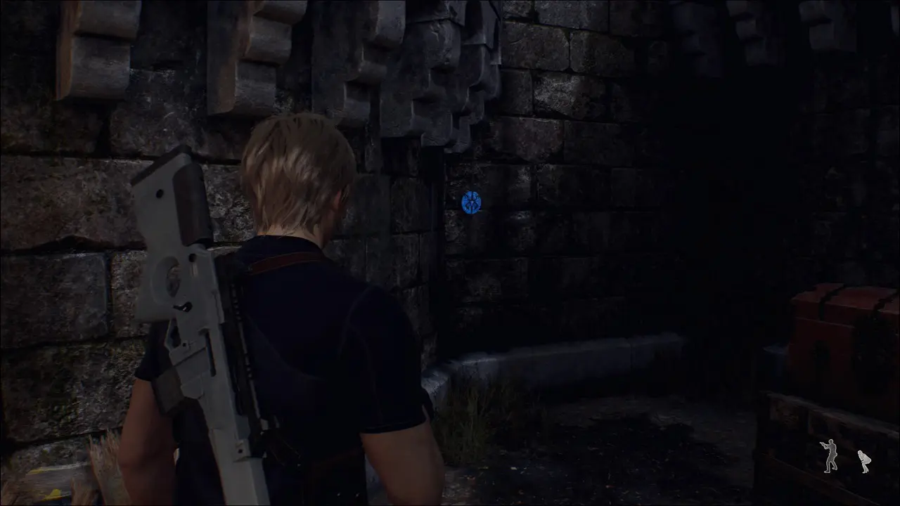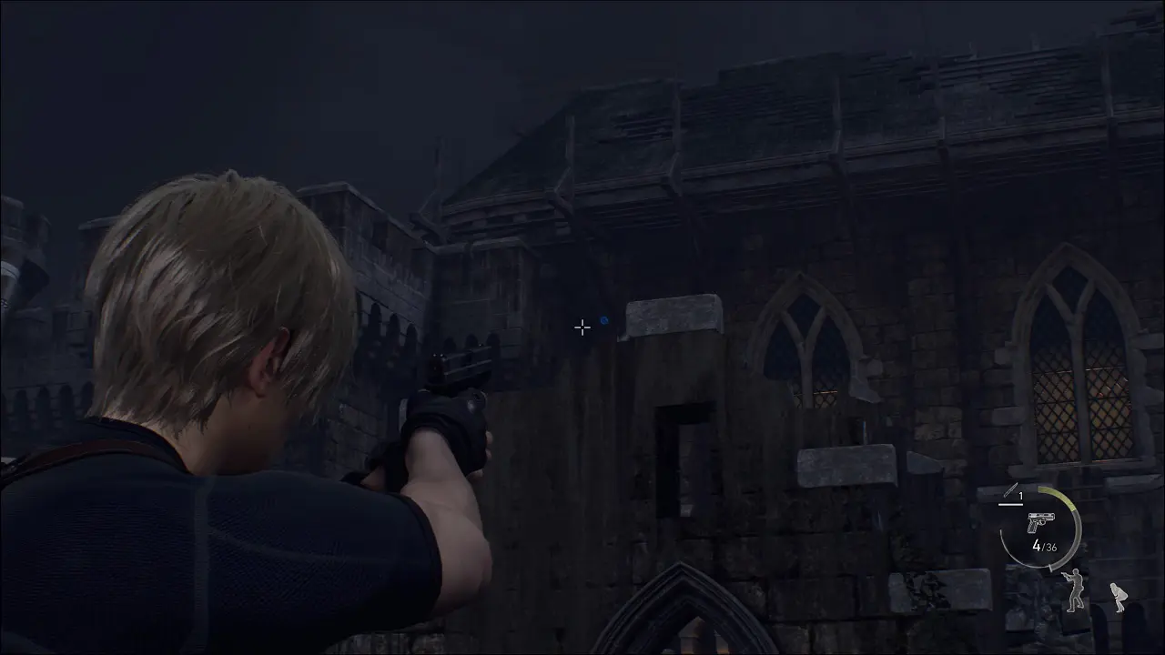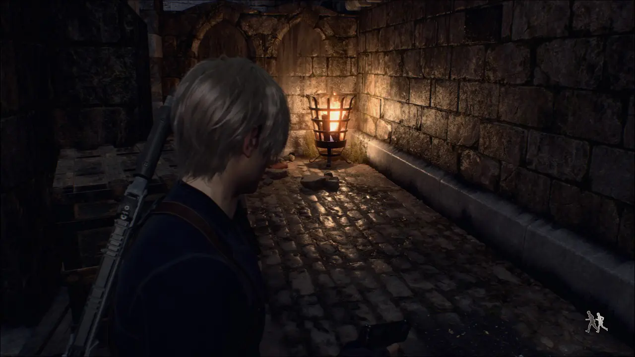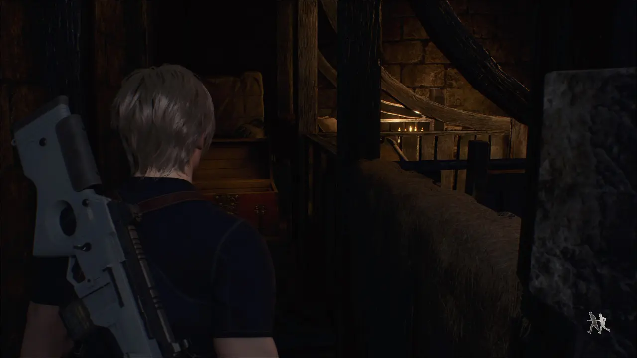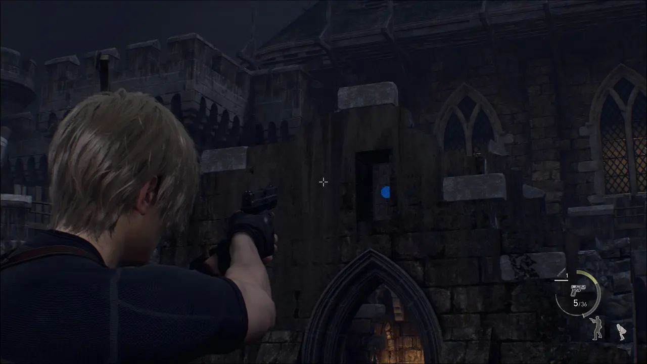 Volte e quebre o barril diretamente a sua frente, suba as escadas e use o binóculo no parapeito para ver um inimigo distante. Continue pelo caminho até chegar em um grande portão, nesse ponto, passe pela porta a direita, você estará em uma sala com seu primeiro inimigo. Ele está infectado por um tipo de La Plaga mais agressivo, e atacará com tudo. Caso ele pule sobre você, esteja atento para se defender. Atire na criatura em sua cabeça para impor mais dano.
