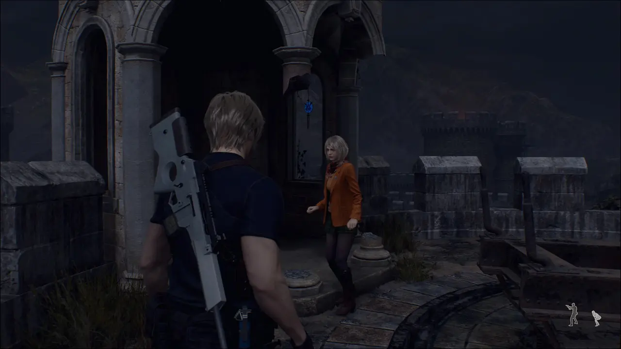 Suba pela escada que acabou de baixar e vire diretamente a esquerda, subindo outro lance de escadas, mais ao fundo teremos um vaso. Faça o mesmo do outro lado. Agora, precisaremos impulsionar Ashley para a esquerda para que ela acione as outras duas rodas. Enquanto ela está fazendo isso, os inimigos aparecerão para atacá-la e a você também, Mantenha Ashley em segurança e permaneça vivo, consequentemente.