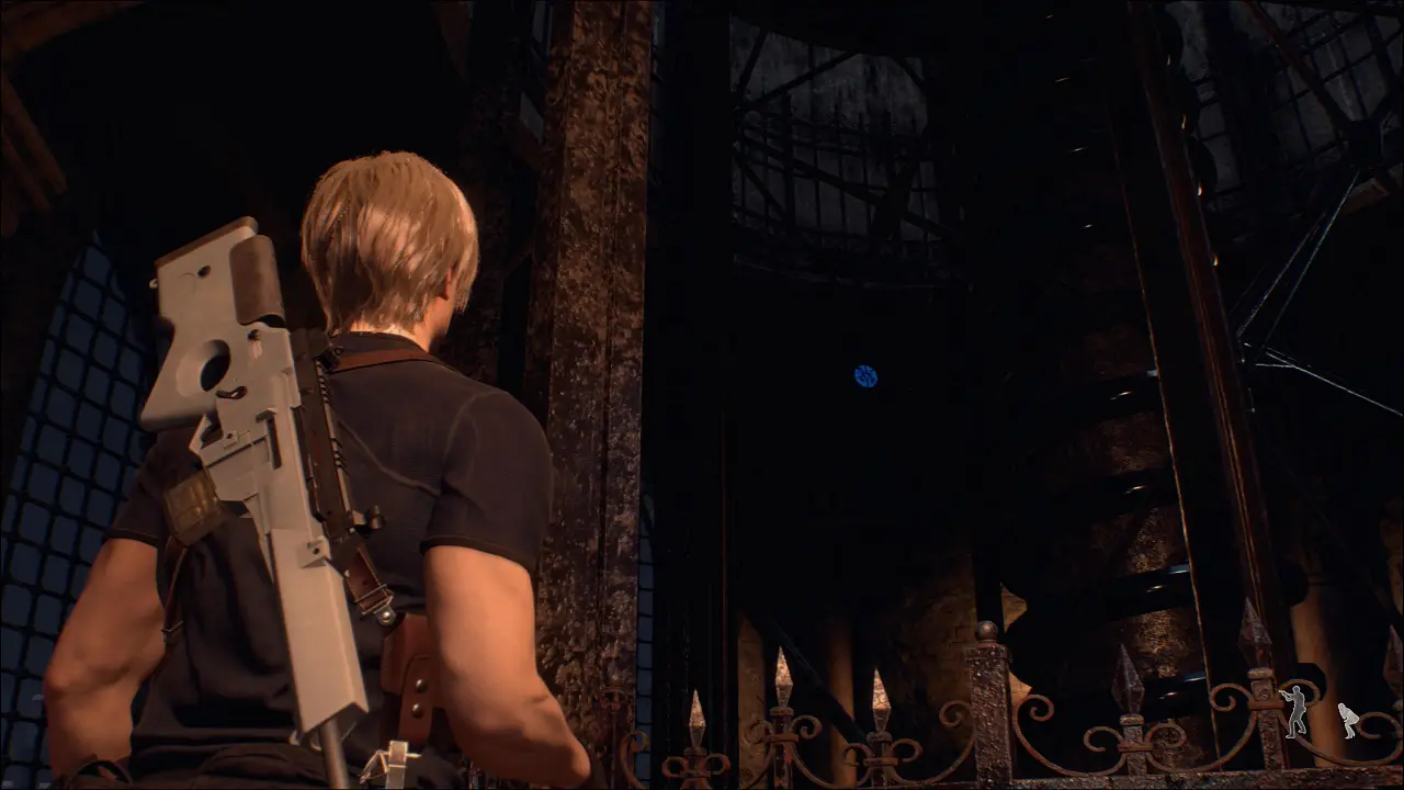 Após morrer, o inimigo deixará cair um Berilo Vermelho, não deixe de pegar. Além disso, temos vários itens e vasos espalhados pelo local, quando recolher tudo, abra o portão usando a manivela, chegando até onde Ashley está. Nesse local, leia as Observações do Zelador. Ele fala sobre o passado do homem transformado em Garrador, e de seu trabalho como torturador da corte de Salazar. Ele era o responsável por alimentar a criatura, após ler o documento, abra o portão com a Chave da masmorra.