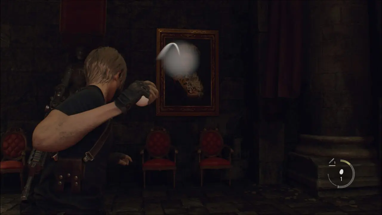 Agora vamos atrás do quadro que devemos vandalizar, ela está aqui mesmo nessa sala, você notou? A pequena pintura de Ramón a esquerda é a que precisamos. Lembra que falei sobre guardar um Ovo de Galinha até o Capítulo 12, caso tenha feito isso, guarde o Ovo de Ouro para vender e faça o procedimento abaixo com o ovo comum.