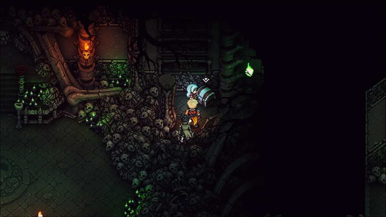 A alavanca está no centro da sala e nos leva para a última Assombração. O inimigo está acompanhado de mais 3, nada que você já não tenha enfrentado. Se concentre nos inimigos menores e por último na caverona, não deixe seu PV abaixo de 50! Acabando com o último inimigo, conseguiremos o último cânio também, mas antes de ir embora, siga o caminho secreto a direita para chegar em um baú com a importante Armadura Assombrada, equipe em quem estiver com os atributos referentes a armadura mais baixos.