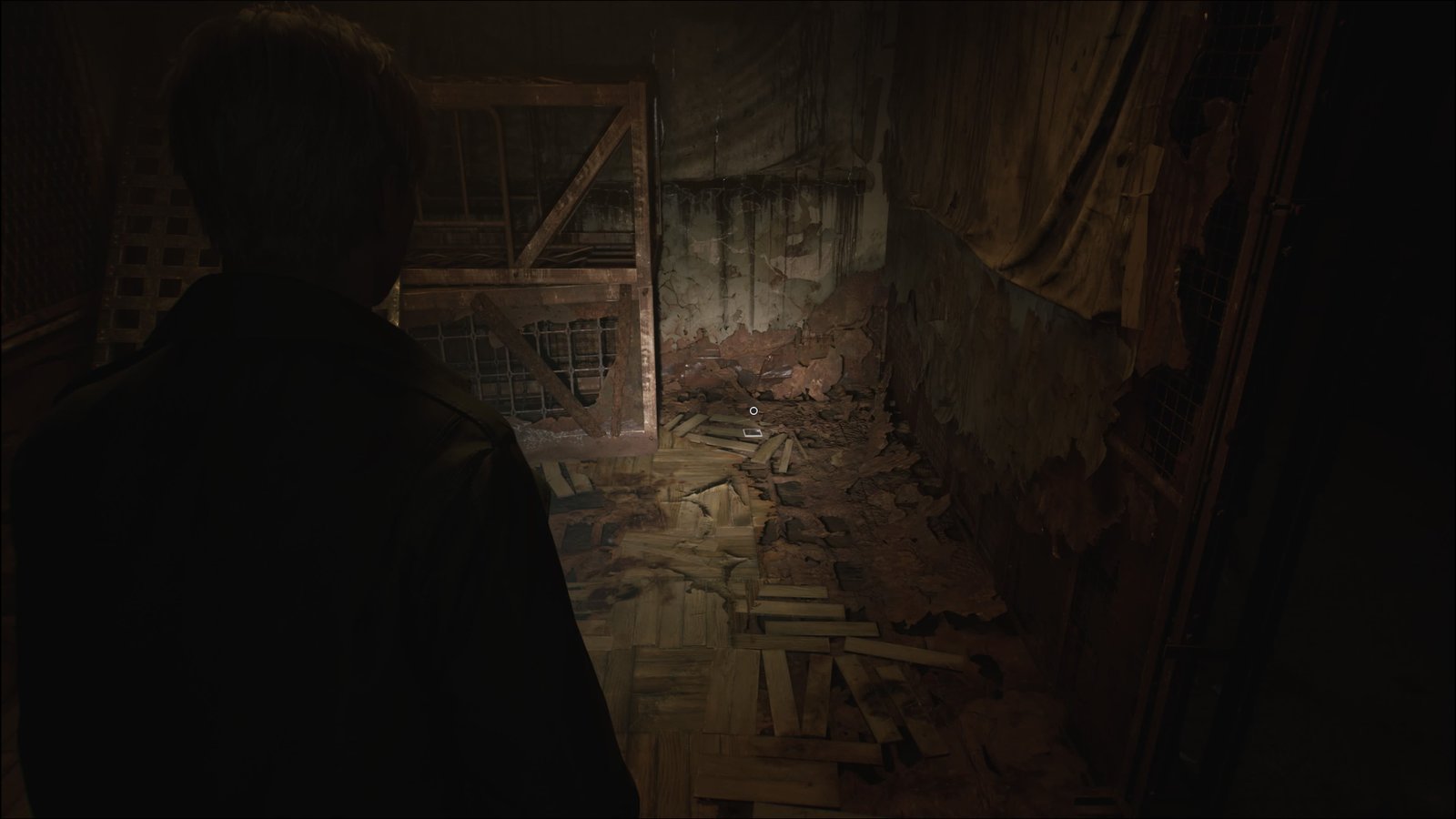 Após a conversa, conseguirá a Faca de Angela, que infelizmente, não pode ser usada como arma. Na mesa em frente, pegue também a Chave da Resiliência. Saia desse apartamento e siga o corredor para o sul. Vá até a porta dupla ao final e use a Chave da Resiliência para destrancá-la. Entre e vire à direita. Pegue as Balas de Pistola no sofá e note que James marcará a porta com o S no mapa. Volte e siga para oeste, passando pela porta dupla. Verá um Manequim correndo do outro lado da parede. Entre no Apartamento 101 e verifique a partitura no piano, na cômoda logo em frente. Abra o estojo médico para pegar uma Seringa e pegue Balas de Pistola mais adiante. Siga pelo corredor à direita e entre na porta. A Manequim que vimos antes estará escondida atrás do barril do lado direita da escada, mate-a e então pegue a Foto Estranha 5/26: União Eterna no chão adiante.
