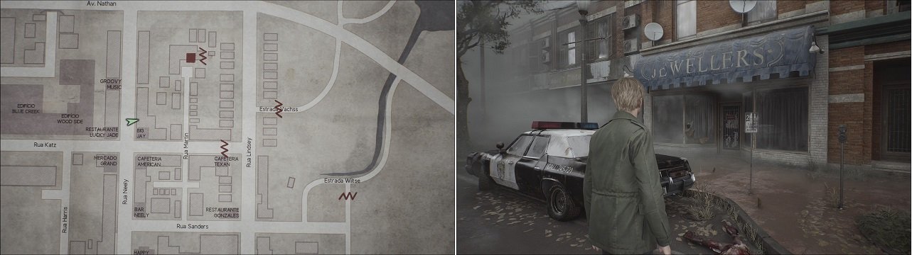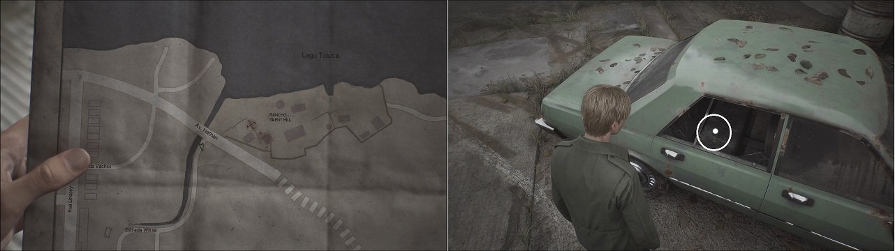 Seguindo em direção à cidade pela Estrada Wiltse, passaremos por um portão e um túnel, saindo deste túnel, note o carro verde estacionado a esquerda. Apenas de posse da motosserra podemos quebrar os vidros desse carro para conseguir a Chave da Tristeza.