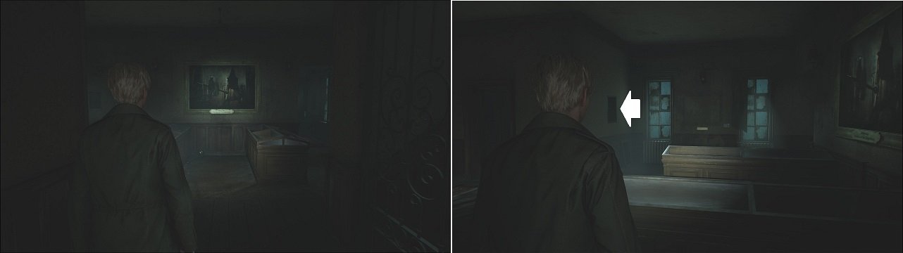 Após conseguir passar pelo Hotel Jacks. Verifique a Mansão Baldwin, onde Maria falará um pouco. Entre no local e verifique a mesa na varanda para encontrar o Crisma Branco (2/4) (Item necessário para o Final Renascimento).