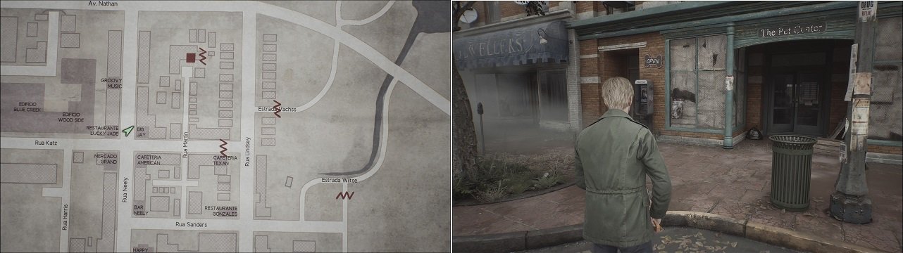 Saindo da Mansão Baldwin, siga em frente até a Rua Katz, no momento em que entrar na rua, verifique o portão com um osso ao lado da primeira casa do lado direito da rua. Passe pelo portão e siga em frente, verifique a casinha do cachorro para encontrar a Parte da Chave Quebrada (2/2) (Item necessário para o Final Cachorro). Combine essa parte com a que pegamos anteriormente para conseguir a Chave de Cachorro.
