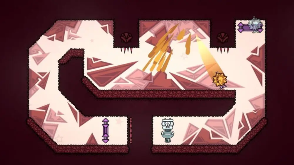Use o pouco de líquido que resta no chão para se movimentar e se retirar para um vaso sanitário que pode salvar sua vida ou jogá-lo em reinos muito mais desafiadores.