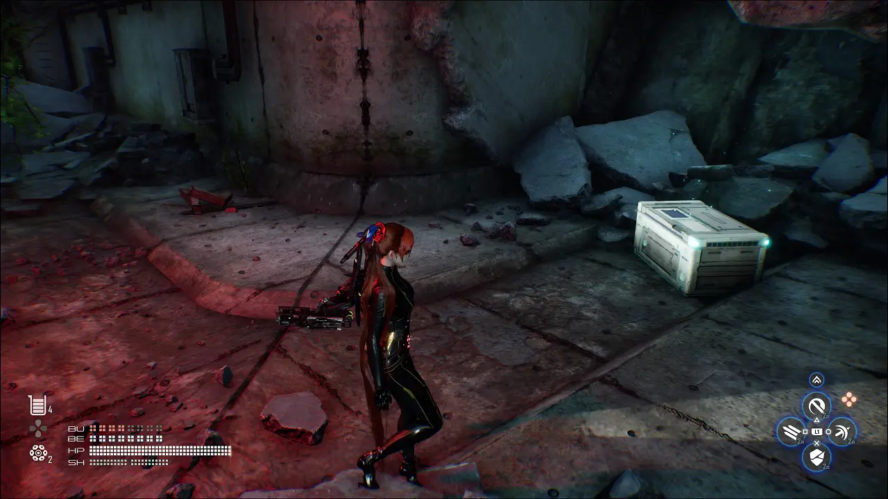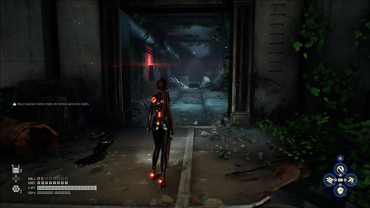 Inicialmente, desça pela escada vertical, teremos de eliminar dois inimigos. Feito isso, siga até o mecanismo onde deveremos colocar uma Célula de Energia que ainda não temos. Ainda sim, verifique o corpo ao lado para encontrar o Cartão de Memória: Apelo de Jamie. Os outros cadáveres que estão aqui, podem conter alguma EXP, não deixe de verificar, pois um desses cadáveres nos fornecerá uma Senha. Com os inimigos mortos, itens coletados e sabendo sobre o mecanismo, podemos subir novamente. Caso esteja usando sua esquiva constantemente, você deve estar ganhar o troféu: