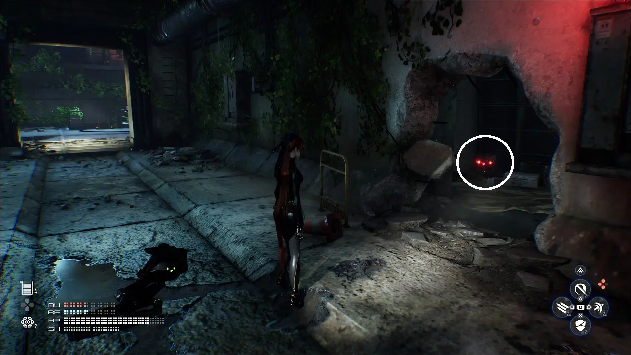 Se ainda não conquistou, continue esquivando e você deverá receber em breve, se já conseguiu, ainda melhor. Na parte superior, siga em frente e mate o inimigo furtivamente, conforme você avança, outros três inimigos vão surgir para possuir os corpos. Tente eliminar o máximo deles que puder, pois se todos possuírem corpos, será uma luta difícil. Entrando na parede de onde os inimigos vieram, abra a caixa para recolher o Padrão Design: Mascote do dia-a-dia. Com os inimigos mortos, abra a Caixa de Suprimentos usando a senha que pegamos a pouco para conseguir a Célula de Fusão, também colete o Cartão de Memória: Memória de Paul no corpo logo a frente. Agora que temos a célula, podemos voltar ao andar inferior para abrir a comporta.