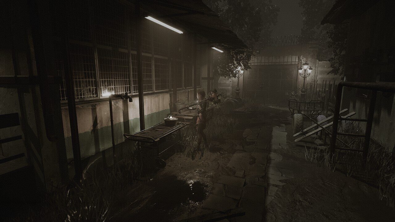 Colete os pregos em rolo ao lado da escada antes de subir, no topo, ignore a porta com a barricada, voltaremos aqui em breve. Siga pelo corredor e quebre as caixas, encontrando alguns cartuchos de escopeta. Continue em frente e assista à cena, você conhecerá Isabella. Após a cena, siga em frente no corredor e vire à esquerda na bifurcação, quebre as caixas e cuidado com a armadilha no teto mais adiante. A porta dupla está trancada, volte e siga pelo lado oposto do corredor.