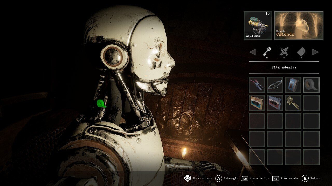 Verifique o robô sentado na cadeira diante do corpo e note o vazamento de óleo no pescoço dele, use a Fita adesiva para acabar com o vazamento. Faça o caminho de volta ao mundo real.