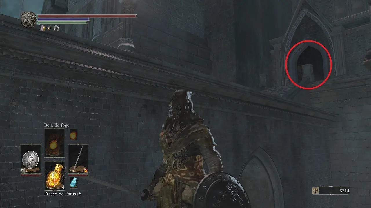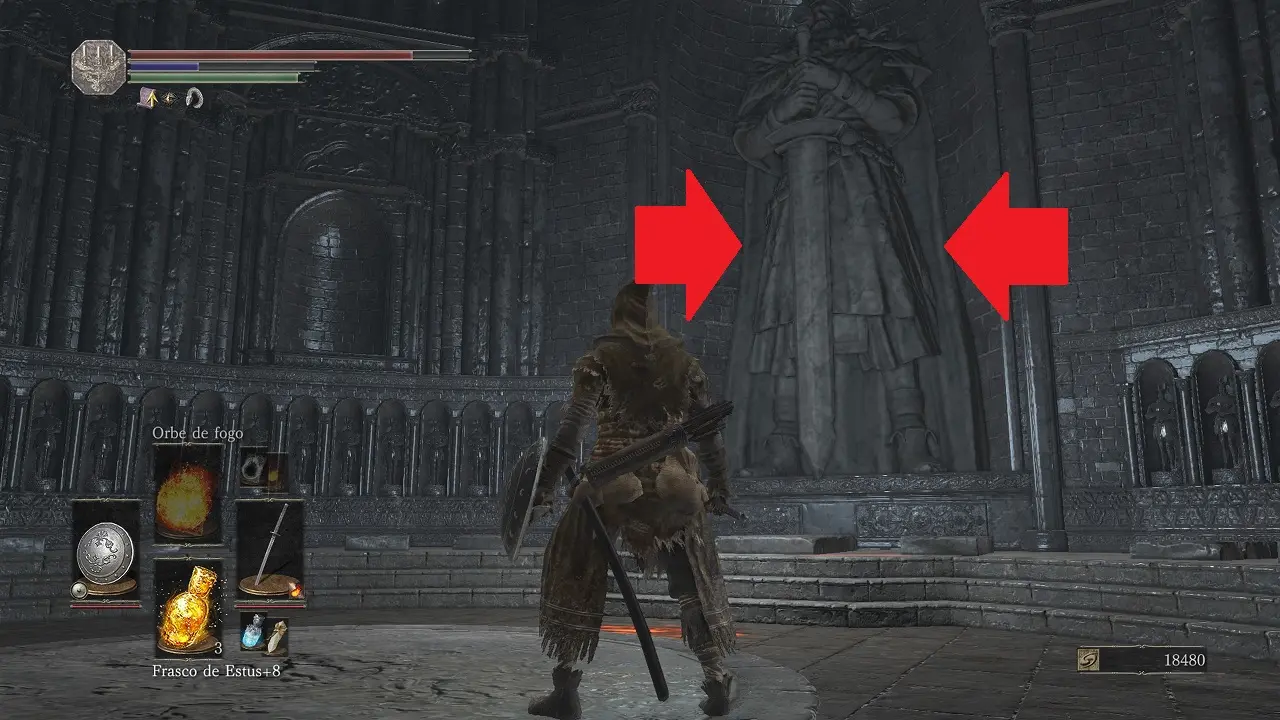 Seguindo o guia, você deve ser teletransportado para para dentro da catedral na Grande Muralha de Lothric, caso isso não aconteça, faça essa viajem indo até a fogueira Grande Muralha de Lothric: Vordt do Vale Boreal, suba a escada e no final do caminho, entre na catedral para encontrar Emma agonizando no altar. Converse com ela para receber a Bacia de juramentos, após a breve convrsa, ela morrerá. Antes de qualquer coisa, use o Osso do regresso e volte ao Santuário do Elo de Fogo para consumir as almas que possui, prepare-se para mas um combate, quando estiver pronto, volte até a catedral e se aproxime da estátua atrás de onde Emma estava.