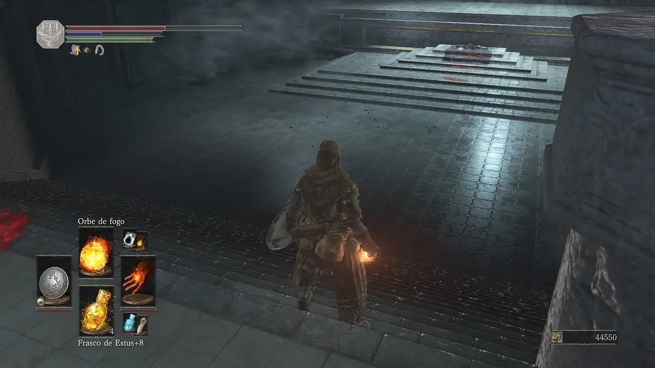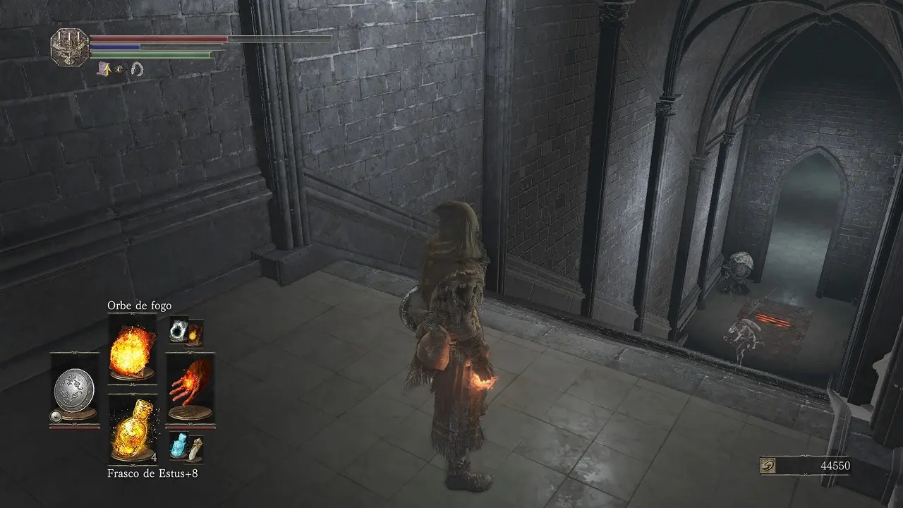 Quand estiver pronto, siga até a fogueira, queime algum Fragmento de osso de Morto-vivo que possa ter e volte para a fogueira de Anor Londo.