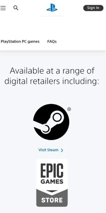 Ao acessar a página, temos uma área com todos os jogos da PlayStation Studios que já foram lançados no PC, como God of War, Horizon Zero Dawn, Days Gone, Predator Hunting Grounds e HELLDIVERS, por exemplo.