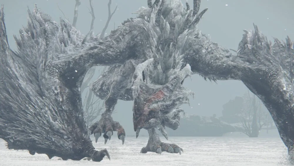Irá encarar Borealis, a Névoa Congelante. É um dragão, como todos os outros, só que muito mais forte. Basta uma baforada de gelo dele para acabar com você. O seu cavalo e a sua cópia serão vitais nessa batalha. Invoque sua cópia e jamais fique muito perto dele, ou na frente dele. Fique sempre do lado dele, a média distância, soltando feitiços. Deixe que sua cópia o distraia, enquanto lançar feitiço atrás de feitiço nele. É a maneira mais segura de enfrentá-lo, apenas tome cuidado com seus golpes de rabo. Ao derrotá-lo, conseguirá um Coração de Dragão. Um novo poder estará disponível na Catedral da Comunhão do Dragão, em Caelid: o Encantamento: Névoa de Borealis, só que precisa de dois Corações de Dragão para comprar, e só deverá ter um no momento.