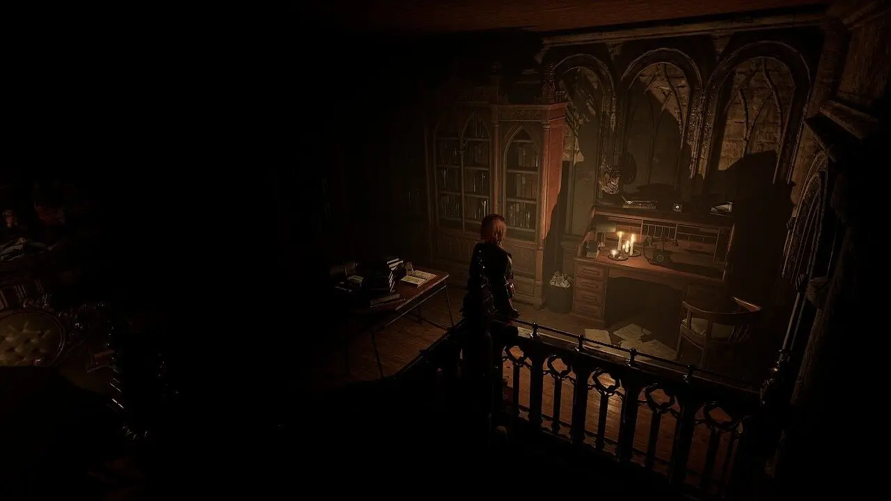 Colete o Cilindro de ar comprimido (pequeno), combine ele com o Pregador para melhorar a arma e sobre a mesa e a Fita de gravação em uma das prateleiras. Destranque o portão para criar um atalho, desbloqueando toda a área da Biblioteca, volte a Capela de Nossa Senhora.