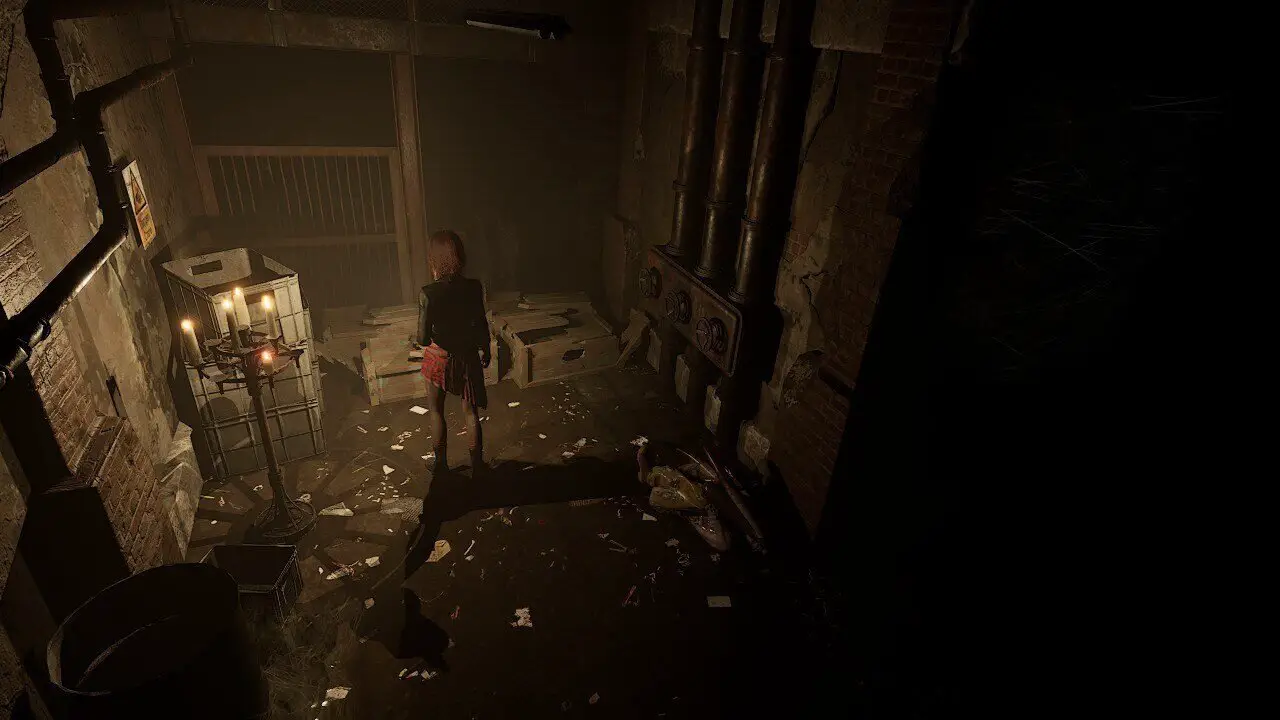 Pegue os analgésicos da mesa ao lado da cama e vá para o corredor ao lado. Siga o corredor pelo lado esquerdo, tomando cuidado com os canos com luzes vermelhas, eles soltam vapor assim que passa por eles, siga o corredor até o fim. Um inimigo aparecerá atrás de você e todas as luzes se apagarão, corra até o final do corredor e acenda as velas do pedestal rapidamente, use a escopeta para se livrar da criatura rapidamente. Caso esteja seguindo o guia corretamente, você pode estar conseguindo uma conquista aqui, de qualquer forma, colete os pregos aqui e use o pé de cabra para quebrar as caixas e revelar uma passagem. Desça a escada e antes de passar pela porta, colete os pregos em rolo atrás da escada que acabou de descer.