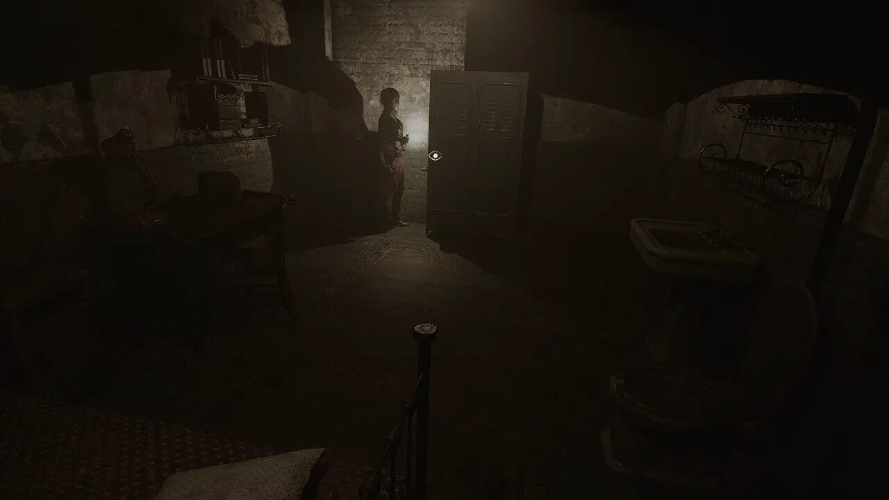 Pegue a Povidone nas caixas e desça a escada, siga pelo corredor entrando na última sala à esquerda, pegue o Diário do Irmão Juann 2 (20/31). Ainda nessa cela, verifique o quadro na parede e clique no centro do peito da garota no meio para abrir a passagem secreta no final do corredor. Quebre ambas as caixas no caminho, pegue os pregos e siga em frente. Verifique o carrinho imediatamente à frente para mais alguns pregos, continue até o final do corredor e verifique o quadro de energia para abrir a cela atrás de você. Entre e colete a Fita VHS — Congelador sobre a cama. Volte até o elevador e suba, siga pela porta ao lado dele para a Sala de Reunião no andar 1A, use o mapa caso precise se orientar.