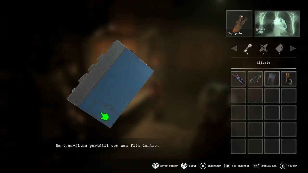 Pegue a fita de gravação sobre a cama e na outra, se quiser, verifique o corpo. Entre na sala adjacente e colete as Peças de moto de metal sobre a mesa, você ainda pode verificar o quadro na parede e os monitores, de qualquer forma, volte até o corredor, siga em frente e note as caixas bloqueando o elevador, voltaremos aqui em breve, passe pela porta no final do corredor.