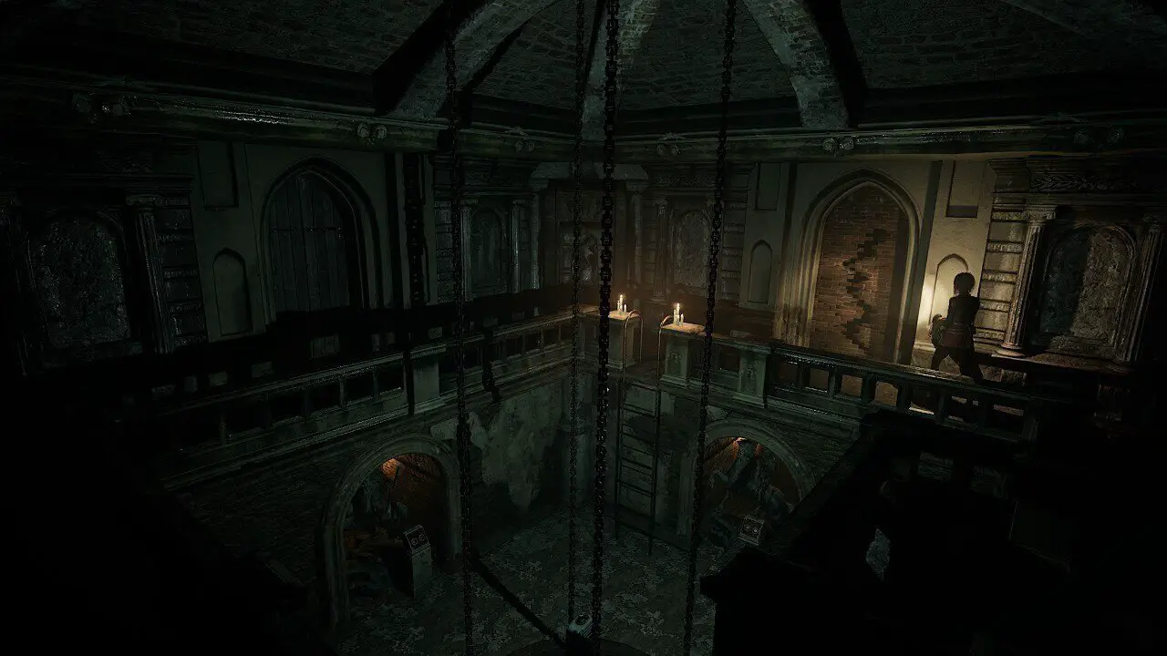 Continuando exatamente de onde páramos no capítulo anterior, siga o corredor até encontrar a freira pendurada em uma árvore, colete os pregos no banco e a Chave de clava que está pendurada. Note que a freira enforcada desaparecerá, ela se tornará um inimigo. Voltando, verifique a estátua próxima à porta e note o local onde teremos de inserir algo, voltaremos aqui em breve.