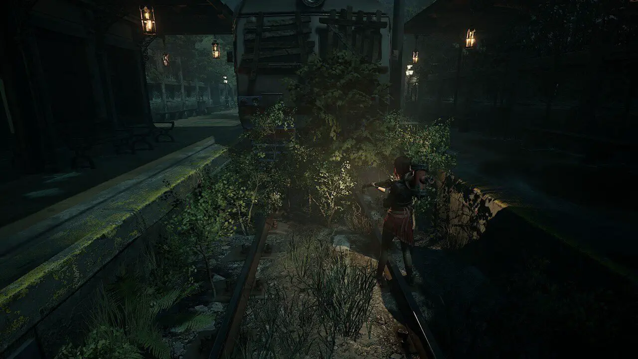Quando chegar na plataforma, siga pelo lado esquerdo até o final para encontrar cartuchos de escopeta, volte e veja o que aconteceu com Joseph, pouco depois do círculo ritualístico, pegue o Diário de Joseph 4 (35/64). Desça a escada no final e entre no trilho do trem, seguindo até a composição, colete a gasolina nos arbustos. Volte e suba na plataforma oposta, entre na estação e verifique o assento imediatamente à esquerda para encontrar o Diário de Miguel 8 (36/64), examine a máquina de venda para conseguir um povidone. Entre na sala ao lado e colete a fita de gravação, verifique as plantas sobre o armário para ter uma referência muito interessante. Saia e destranque a porta dupla para criar um atalho para o Distrito Comercial, mas não siga em frente, volte entrando no vagão de trem.