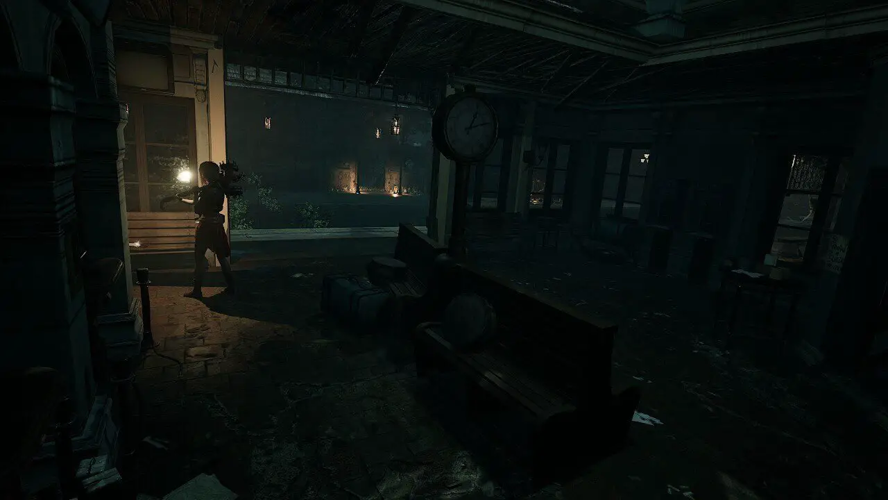 Continue em frente e acenda as velas para conseguir quebrar as caixas, conseguindo cartuchos de escopeta. Na bifurcação à frente, entre no corredor direito e colete a Foto Antiga, Volte e continue seguindo o caminho e ignore a porta de madeira à direita por enquanto e siga o corredor acendendo os candelabros até chegar em uma sala maior. Colete os pregos e os analgésico, acendendo os candelabros em seguida.